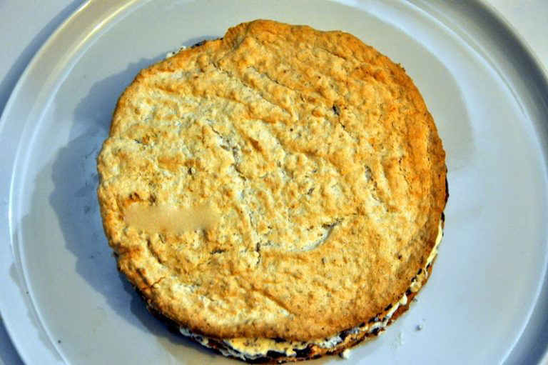 5. Остудите готовые коржи и отделите их от кругов из пергамента с помощью лопатки. Будьте осторожны, так как они могут поломаться. Если такое произошло, можно собрать кусочки как пазл.