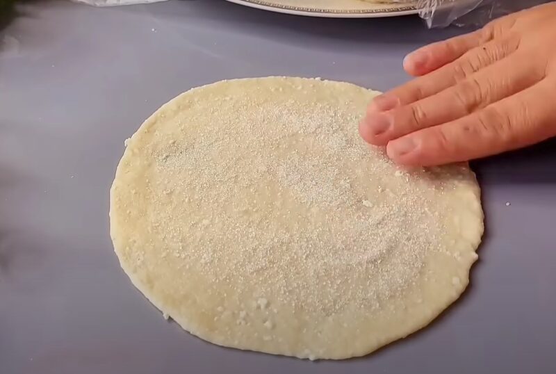 Сворачиваем лепешку в трубочки, создаем небольшую улитку. Аналогично работаем с остальными лепешками.