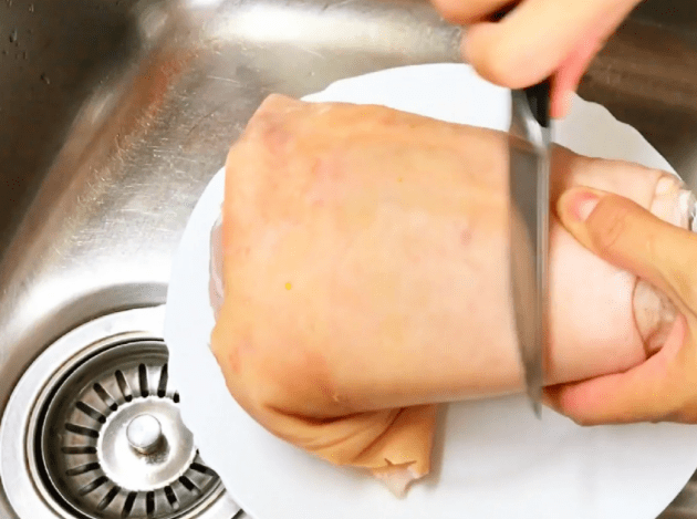 После чистки рулька заметно светлеет. Теперь рульку помещаю в кастрюлю и заливаю чистой фильтрованной водой так, чтобы вода покрывала рульку на 10 см.