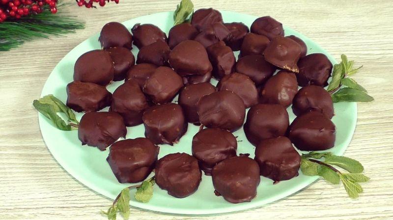 Готовые конфеты забираем в холодильник до застывания шоколада.