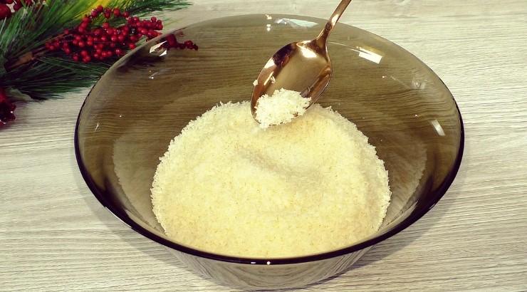Основой рецепта будет кокосовая стружка. Я обычно для рецепта использую 200 г, готовых конфет выходит примерно 40 шт., весом от 16 до 20 г.