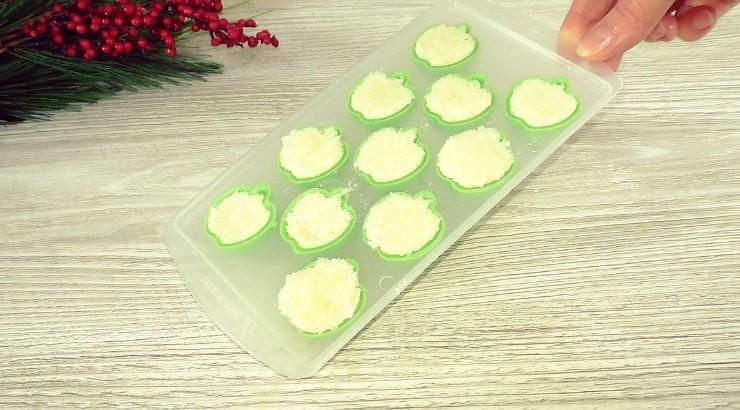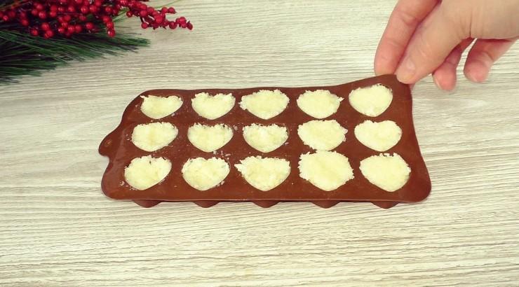 Плотно раскладываем кокосовую массу по формам.