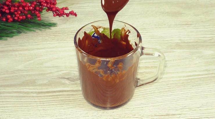 Если заготовки не велики, то шоколад лучше топить в узкой посуде. Удобно погружать будущую конфету в шоколад с помощью шпажки, так расход шоколада меньше.