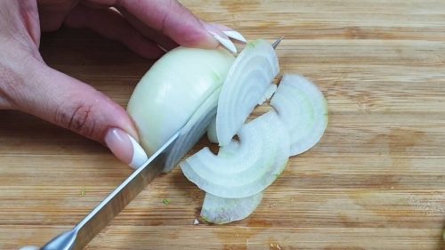 Луковицу нарезаем на полукольца.