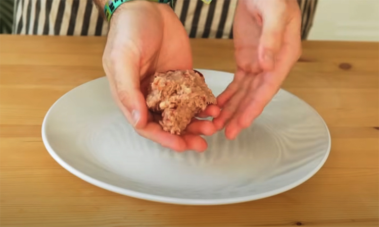 Добавьте постепенно панировочные сухари или овсяные хлопья, пока смесь не загустеет. Формируем из получившейся смеси небольшие шарики и выложите их на разогретую сковороду. Обжаривайте по паре минут с каждой стороны.