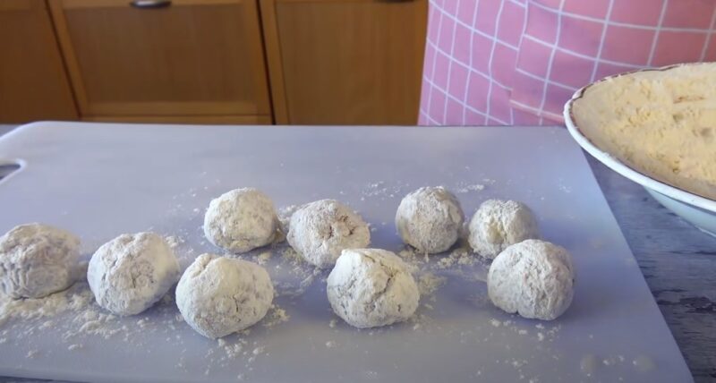 Из воды шарики выкладываем в муку, обваливаем со всех сторон.