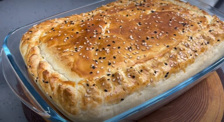 Такой пирог придется по вкусу многим, потому что сырная начинка достаточно популярно. Также если хотите немного украсить пирог, то перед выпеканием его можно посыпать кунжутом, он отлично впишется к остальным ингредиентам.