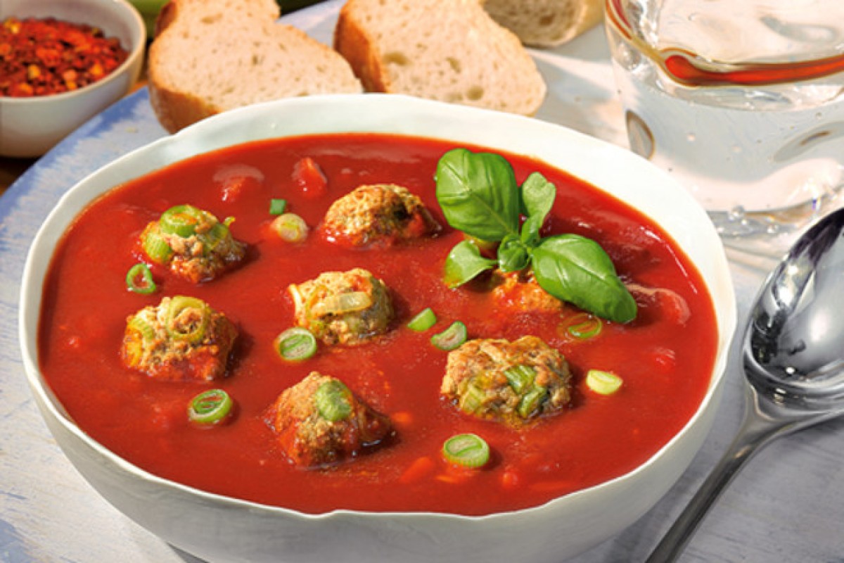 - В мясной фарш добавляем соль и перец, замешиваем и делим на небольшие круглые фрикадельки. Оправляем фрикадельки в суп, к нуту. Пока суп варится, делаем зажарку из измельченной моркови, лука и сладкого перца.
