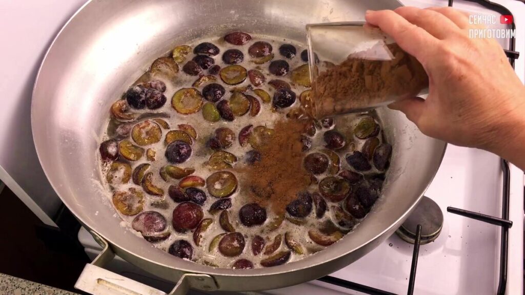 Размещаю кастрюлю со сливами на огонь средней интенсивности и варю, пока сахар полностью разойдется.