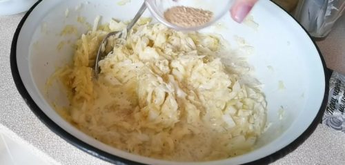 Затем я солю их, перчу, добавляю немного сахара, сушеного чеснока и хорошо перемешиваю.