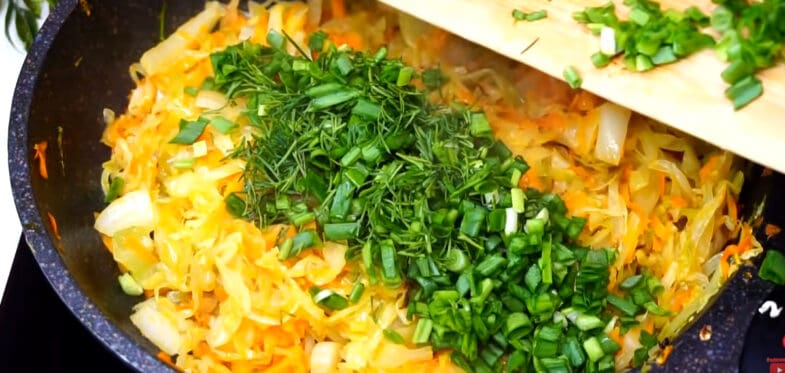 В конце добавляем зелень, у меня зеленый лук и укроп.