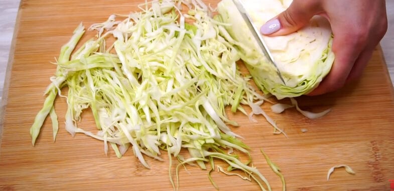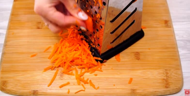 Пока мясо готовится, подготовим все остальное. Капусту 300 г порежем соломкой, морковь натереть на грубой терке.