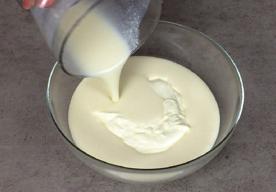 Добавляем в творожную массу. Все тщательно перемешиваем, чтобы не образовались комочки.