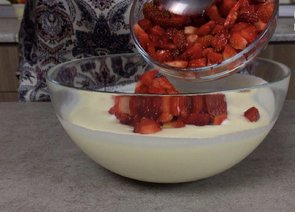 Добавляем клубнику и перемешиваем.