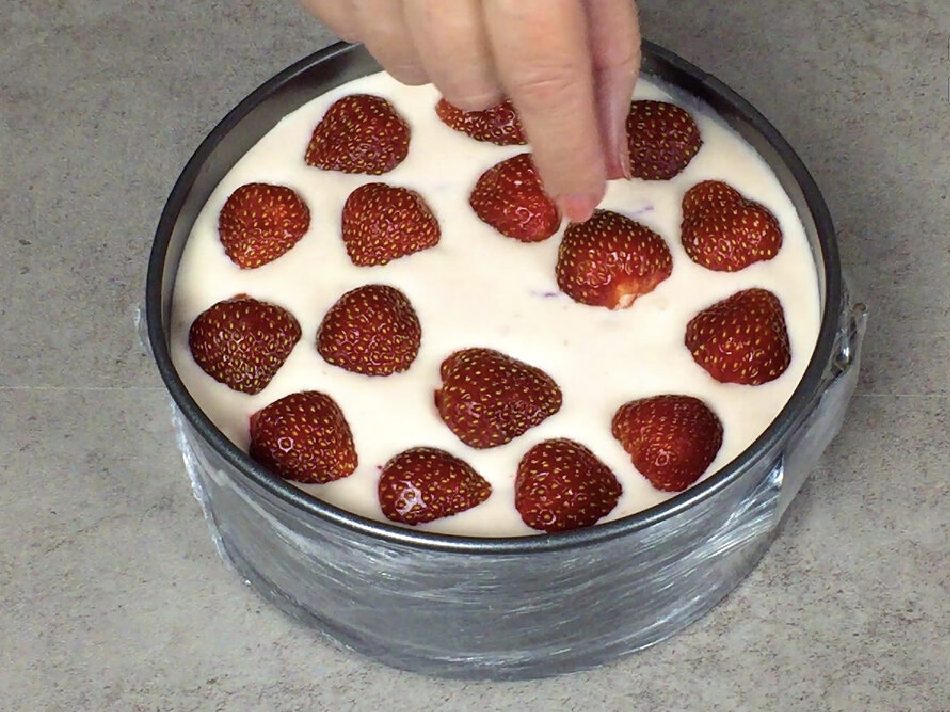 Сверху украшаем клубникой.