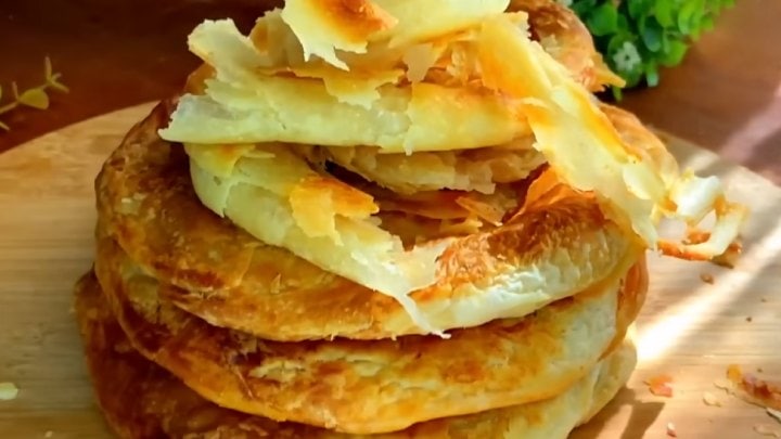 Отправьте в духовку, разогретую до 180 градусов, на 20 минут. Получаются очень аппетитные, поджаристые, слоёные лепёшки!