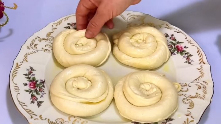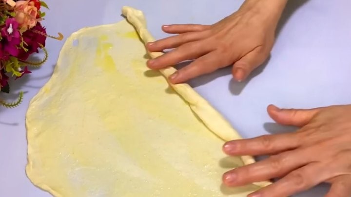 А его, в свою очередь, сверните улиткой. Повторите то же самое с остальными кусочками теста.