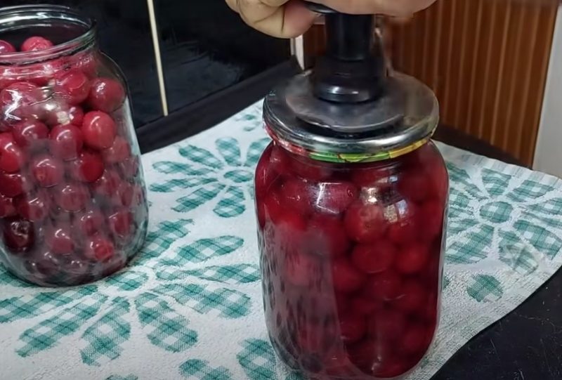 На этот раз мы закрываем банки крышкой и закручиваем с помощью специального приспособления.