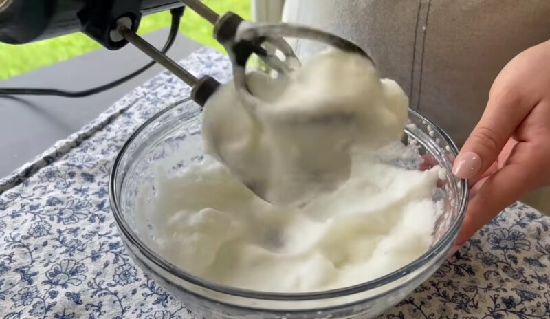 Отделите белок от желтка. Взбейте белки с щепоткой соли до получения пышной устойчивой массы.