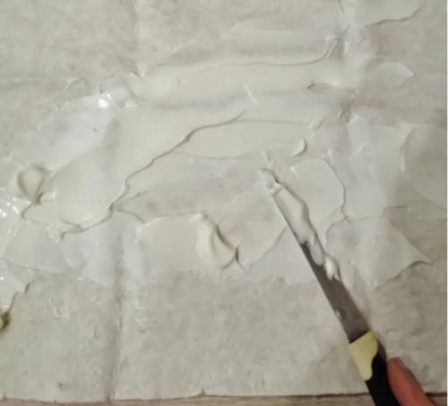 Разложите на рабочей поверхности один лаваш. Покройте его полностью с одной стороны майонезом.