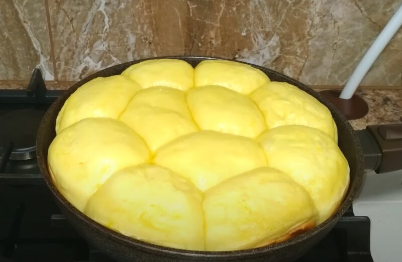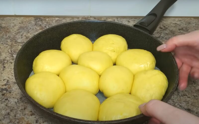 Убираем пергамент из сковороды, выкладываем булочки не обжаренной стороной вниз. Выпекаем булочки дополнительно 5-10 минут.