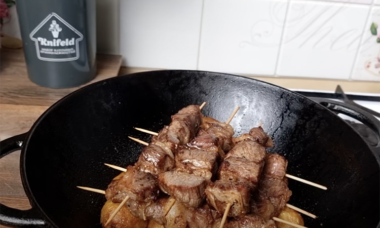 Взяли для шашлыка не мангал, а казан. Теперь на улицу выходить не нужно, жарим мясо с дымком прямо в квартире
