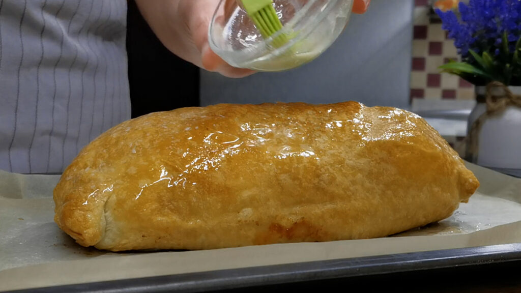 После выпекания нужно сделать то же самое, смазать штрудель таким же растопленным маслом и тоже довольно обильно. А потом уже даем штруделю остыть.
