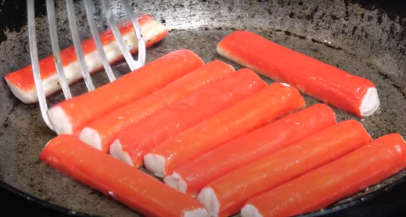 Как уверяют профессионалы, после обжарки вкус крабовых палочек будет более ярким, интересным, именно они будут задавать главную основную нотку салата или закуски.