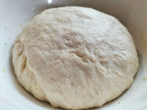 Всыпав всю муку, промесить мягкое элластичное тесто руками. Не переживайте, если липнет немного к рукам, смочите их маслом и будет легко работать с ним.