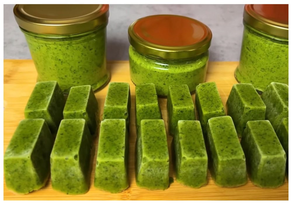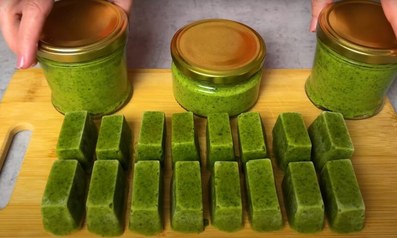 Зеленый соус и замороженную зелень в форме кубиков можно добавлять в супы, горячие блюда и даже выпечку.