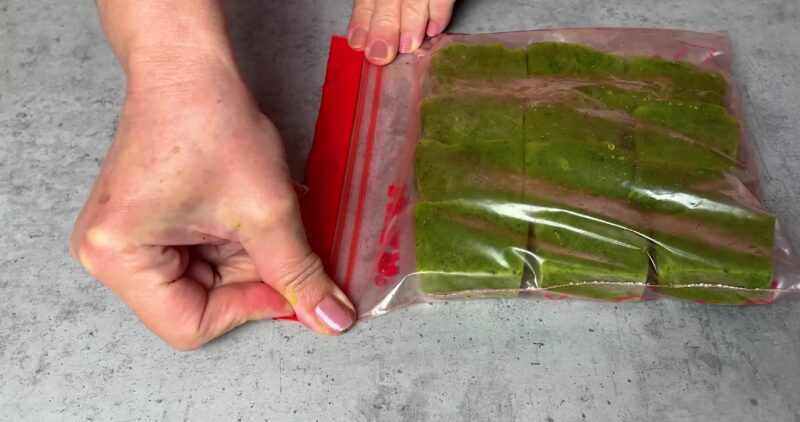 Замороженные кубики переложите в пакеты и храните в морозильной камере.