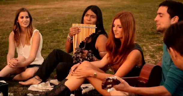Простой мотив, который в клипе наигрывает на гитаре группа путешественников, благодаря народным инструментам эквадорского музыканта Лео Рохаса, «превратилась» в оригинальную позитивную композицию.