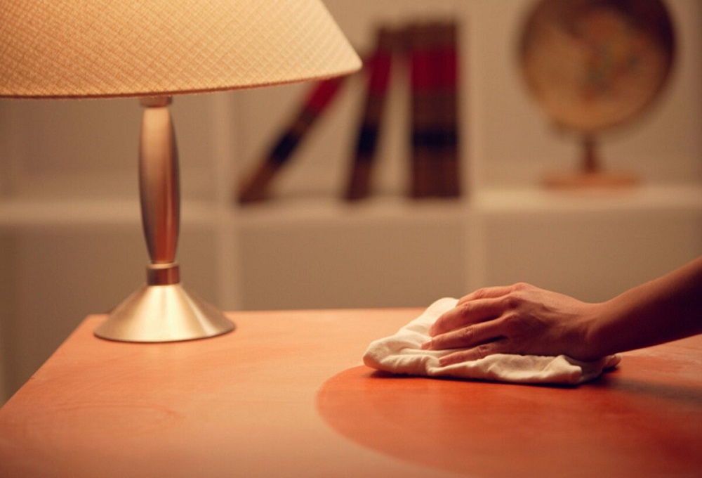 Чтобы пыль как можно меньше оседала на поверхностях, следует протирать их со средствами-антистатиками. Такое средство можно сделать самостоятельно. В стакан горячей воды выдави 1 ч. л. лимонного сока и столько же растительного масла, хорошенько перемешай. Смачивай в этом растворе тряпку перед каждым вытиранием пыли.