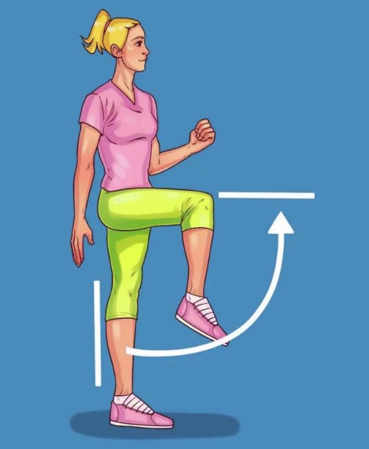 Встаньте на пол босиком, поднимите ногу — бедро должно оказаться параллельно полу. В это мгновение в руке должен быть секундомер — активируйте его. Если продержитесь в таком положении хотя бы 20 секунд — риск инсульта минимален и можно не опасаться старческой деменции.