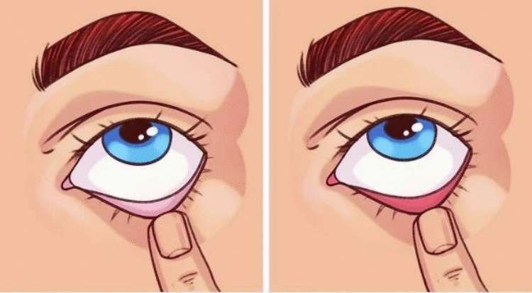 Встаньте поближе к зеркалу и аккуратно оттяните вниз нижнее веко. В норме оно ярко-розового оттенка, но при анемии темнеет либо желтеет. Анемия происходит от недостатка гемоглобина, а также характеризуется недостаточным снабжением кислородом всех тканей. Если изменение цвета века сопровождается постоянной усталостью, одышкой и бледностью кожных покровов — обязательно сделайте анализ на уровень железа в крови.