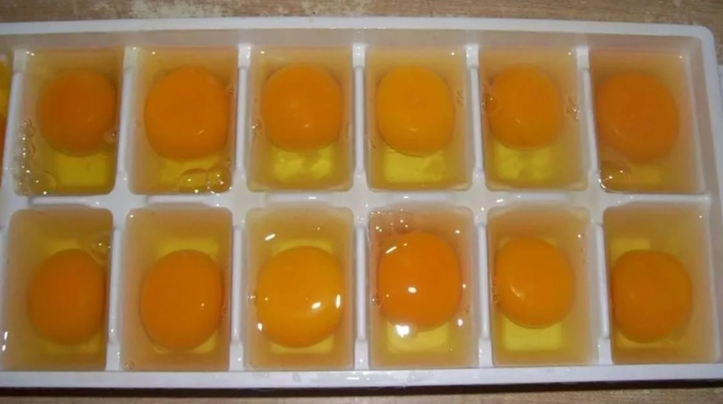 - Целые яйца слегка взбить и заморозить в формочках для льда.