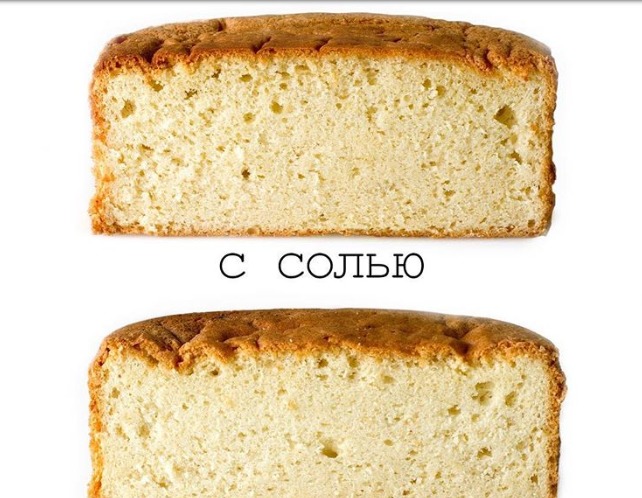Если Вы готовите классический бисквит, то соль мы не используем. А вот в шоколадный пирог необходимо немного добавить.