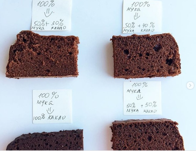 Для приготовления шоколадного бисквита используется какао. Его должно быть не больше 50 % от общего количества муки.