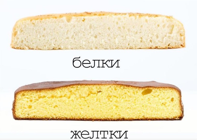 По ГОСТу, желтки и белки добавляют в разных пропорциях. На 5 желтков идут 3 белка. Большее количество белков сделает бисквит резиновым. Еще один момент. Яйца взбиваются не более 7 минут.