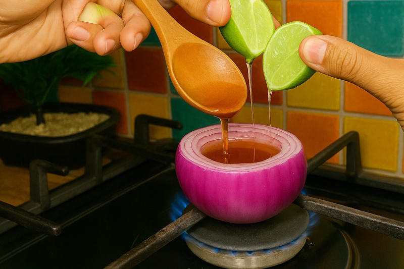 Это простое, но эффективное домашнее средство идеально подходит для облегчения кашля, улучшения состояния дыхательных путей и естественного укрепления защитных сил организма. Сочетание ингредиентов, известных своими целебными свойствами — красного лука, лимонного сока и мёда — создаёт натуральный сироп, который используется уже много поколений.