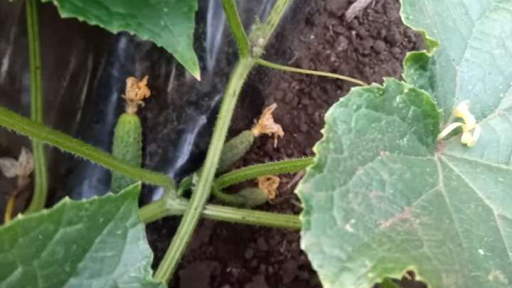 В крайне жаркое лето, когда дождя нет 3-4 недели, можно дать каждому огурчику буквально 2 шприца воды в разрез в плёнке. Однако, когда идёт дождь, конденсат вновь активно собирается под плёнкой и продолжает питать огурцы! Поэтому весь сезон поливать их не нужно — вам останется только собирать урожай.