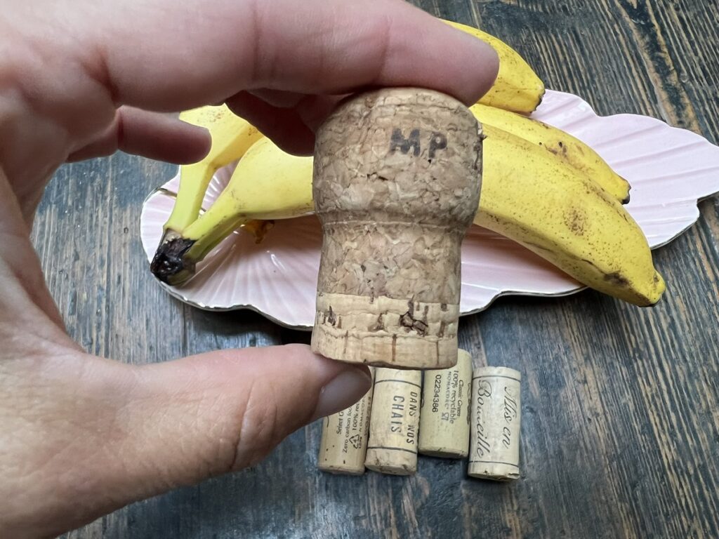 Даже у людей совсем непьющих хоть одна винная пробка 100% лежит про запас. С Нового года осталась из-под шампусика. Я, например, из них ручки для кастрюль и чайников делаю, на ножки стульев приклеиваю, да мало ли где может пробка в хозяйстве пригодится! Поэтому не выбрасываю никогда — просто в ящик стола бросаю. До случая!