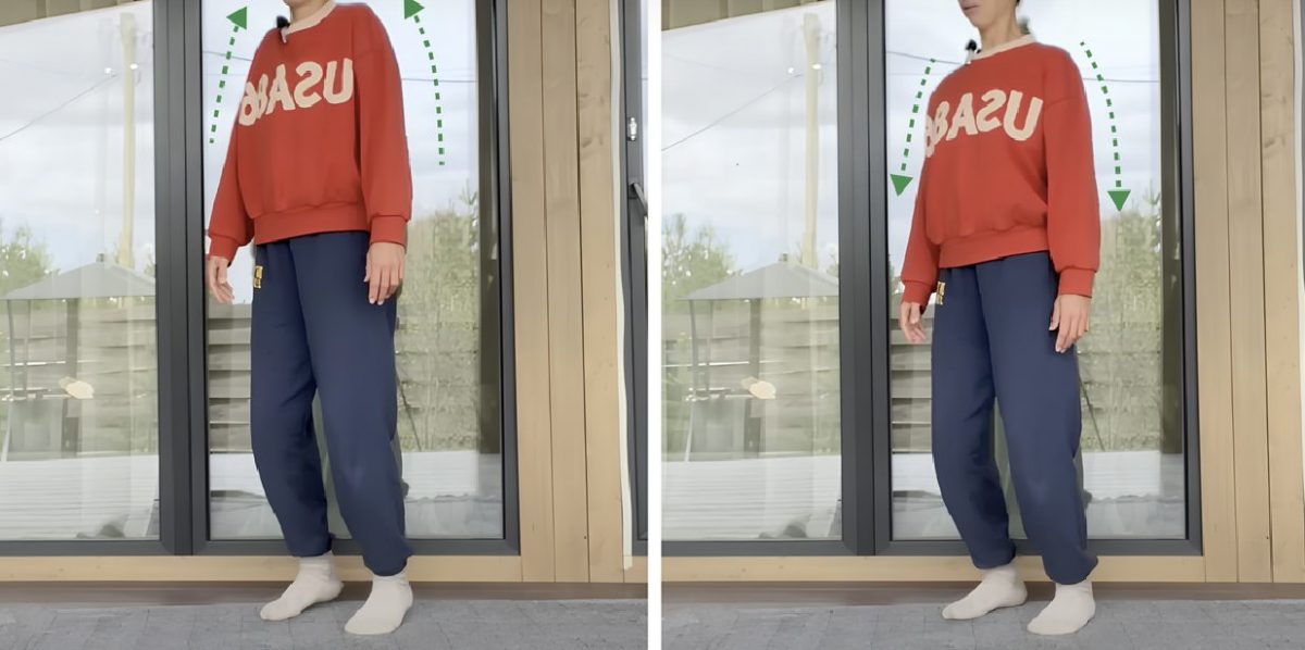 - Стопы — внимание отдельно. Их положение влияет на всё тело выше. Если есть плоскостопие или завал внутрь — лимфа не поднимется. Важно перед выполнением упражнений в положении стоя привести в тонус стопу ( как на фото ниже, как бы растягивая стопами пол в стороны)