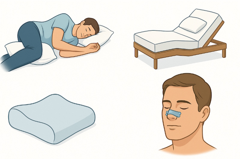 - При апноэ сна (задержках дыхания во сне) лучше выбрать боковую позу — она уменьшает обструкцию дыхательных путей.