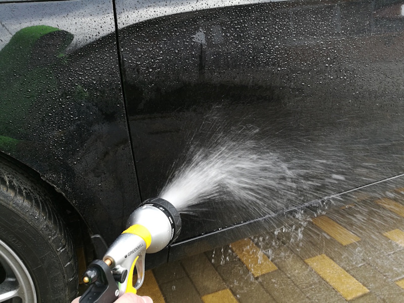 Берём шланг или пульверизатор и обильно поливаем пятна от насекомых водой. Затем наносим магазинное средство «Bug Off» или «Инсект-ремувер». Ждём 3–5 минуты, но чтобы средство не высохло и без нажима протираем микрофибровой тряпкой. Остатки насекомых легко сотрутся.