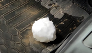 Как ни странно, бороться с результатом таяния снега на ковриках позволяет тот же самый снег. Он обладает хорошими впитывающими характеристиками, поэтому может использоваться в качестве средства для выведения достаточно большого объёма жидкости. На начальном этапе нужно найти источник мягкого снега, который потребуется скатать в шарик. Это можно сделать внутри автомобиля, чтобы снег подтаял и лучше поддавался лепке.