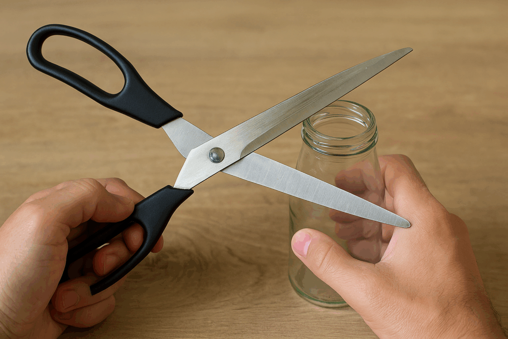 Результат: стекло действует как мягкий напильник, восстанавливая остроту ножниц за считанные секунды.
