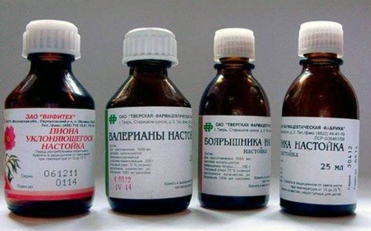 - По 100 мл. пустырника, валерианы, боярышника, пиона уклоняющегося, 50 мл. листа эвкалипта и 25 мл. травы мяты перечной.
