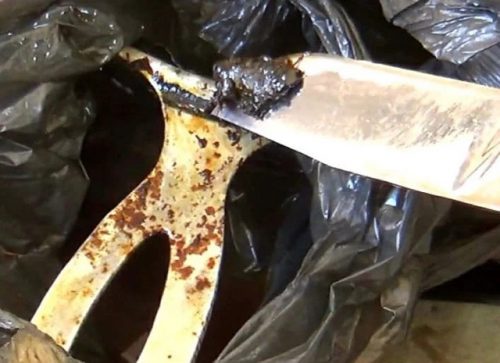 В первую очередь надо купить нашатырный спирт. Также, его называют раствором аммиака. Концентрация средства – 10%. Помимо этого нам нужны плотные пакеты для мусора, веревки и отвертка. Последний инструмент нужен нам для того, чтобы снять со сковород ручки из пластика. Их можно отмыть более щадящими средствами.