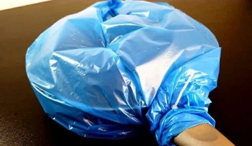 Из мешка для мусора следует «выгнать» излишки воздуха. Полиэтилен должен вплотную прилегать к посуде. В таком случае концентрация раствора станет больше. Далее завязываем мешок. Все должно быть герметично.